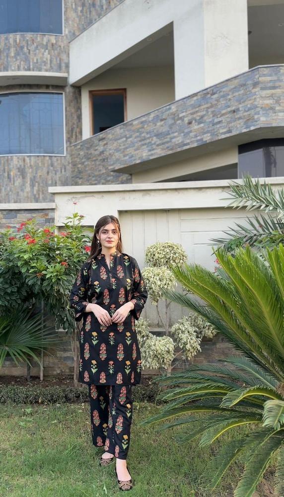 2 Pcs Women's Stitched Linen Printed Shirt And Trouser